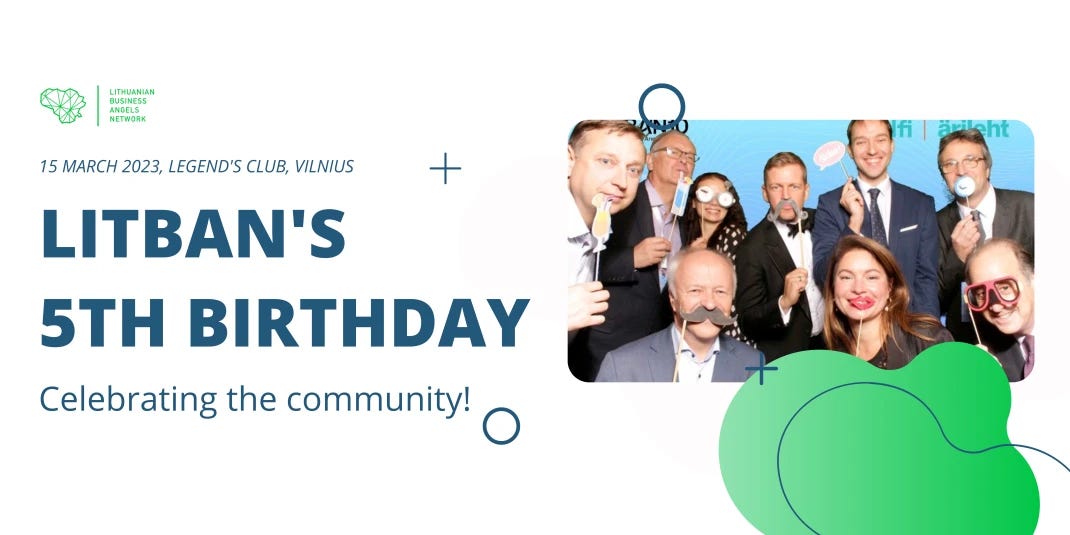 Lietuvos verslo angelų asociacija LitBAN švenčia savo pirmąjį jubiliejų - 5-erių veiklos metų sukaktį. Klube “Legendos” bus pasveikinti ir apdovanoti legendiniai angelai-investuotojai. CoInvest Capital apie pusę savo portfelyje turimų investicijų atliko būtent su šio angelų tinklo nariais, o buvusi vadovė Viktorija yra LiBAN valdybos narė. Bilietai ir visa info čia: https://fienta.com/litban5